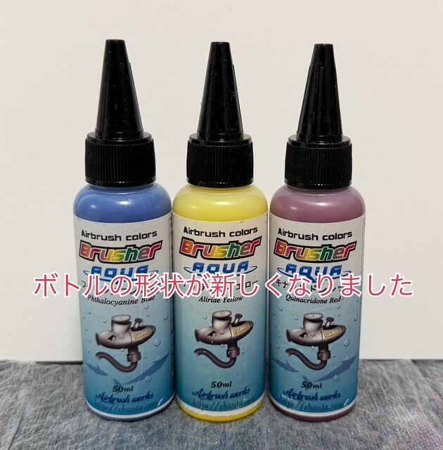 じんエアブラシアート教室お勧めのセットです。Brusherアクア(エアブラシ専用水性塗料)